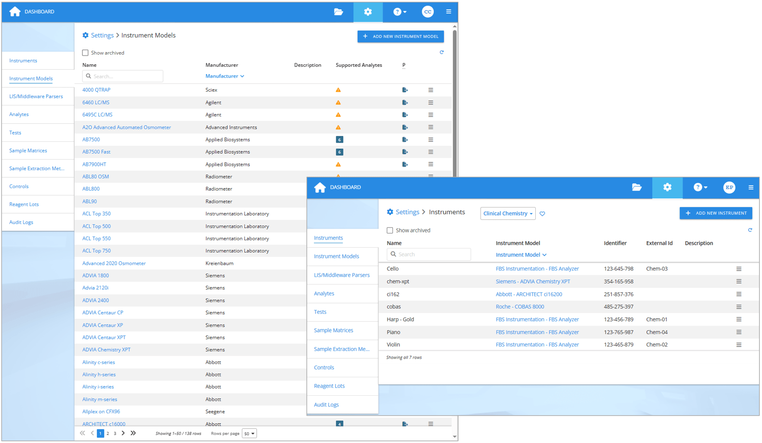 If you cannot find the correct instrument model in Validation Manager, you can contact our support to send us an example export from the new analyzer. That way we can create the instrument model for you with the ability to import the export files it produces. Optionally, you can add the instrument model by yourself in Validation Manager settings. Once you have the instrument model in place, create the instruments using this new instrument model.