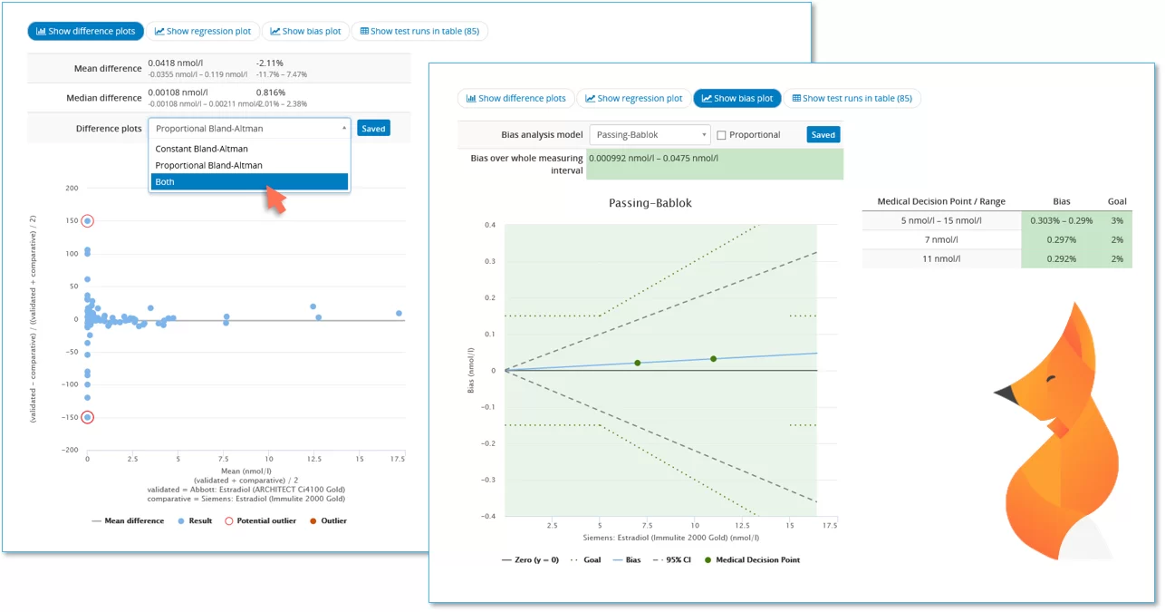 When defining your bias goals, you now have two options for getting more out of the analysis. For quite a while already, you’ve been able to set medical decision points for determining bias at clinically relevant concentrations. More recently, you can also set range specific goals e.g. to set a constant bias limit for low values and relative bias limit for high values. These features give you tools for a more detailed bias analysis. You can run your measurements throughout and over the limits of the stated measurement range, and yet base your conclusions on most relevant concentration levels.