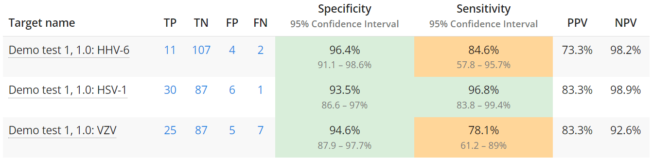 Validation Manager calculates these values with their confidence intervals automatically for you, so you don’t really need to worry about the equations. It’s good to understand though what these values mean.