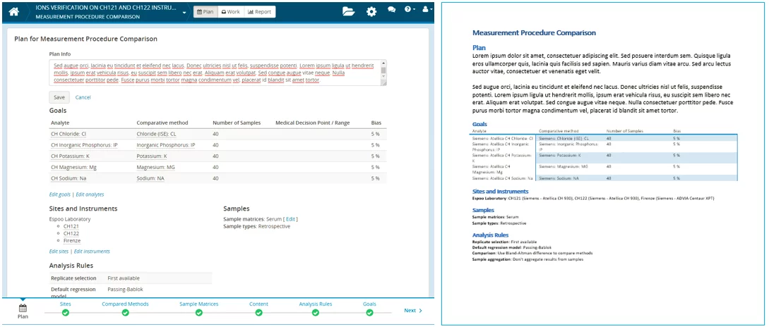 Do you need to write descriptions of individual studies explaining what was done and why? In Validation Manager, each study has their own plan, where you can write this kind of information into the Plan info section. When creating your report in Validation Manager, make sure that your study plan summaries are included. That way your Word report will have all these texts, along with all key information about your study goals, tests, instruments, samples and sites involved in the study.