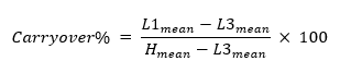 where L1mean is the mean of the results of all the low-level samples run immediately after the high-level samples, L3mean is the mean of the results of all the low-level samples run last in a sequence, and Hmean is the mean of the results of all the high-level samples run in this protocol.