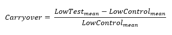 Absolute carryover is calculated as LowTestmean – LowControlmean, and the relative carryover as
