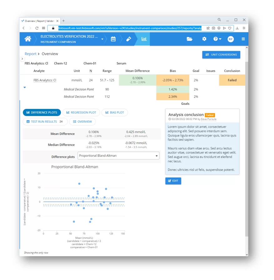 Cloud-based software for verifications and validations of lab instruments and methods.