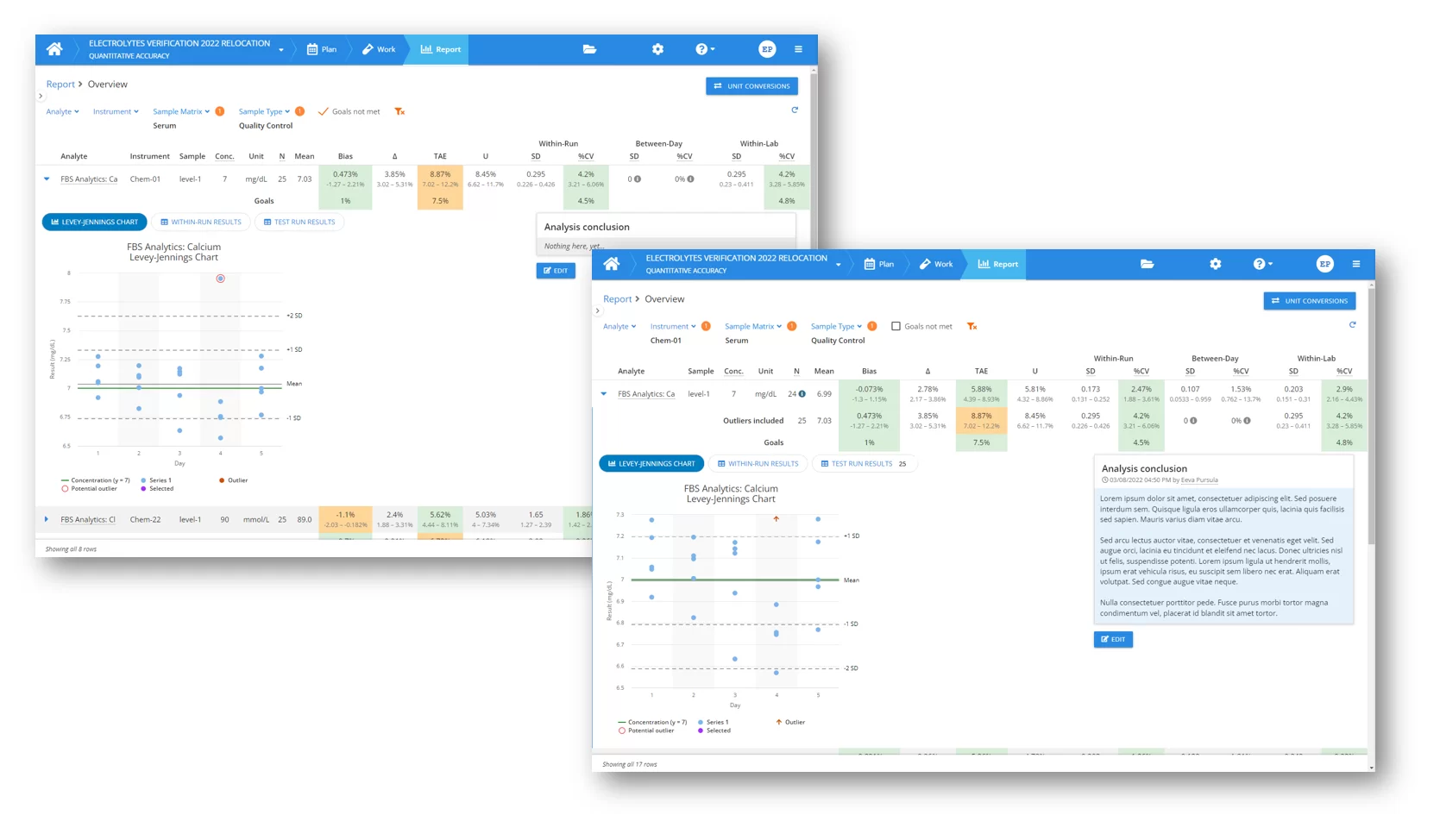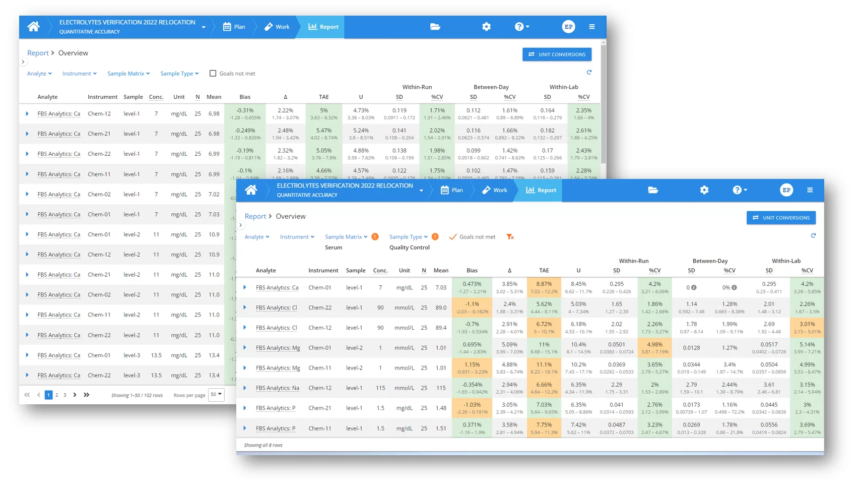 To get a good idea of your new workflow for assessing your results, let’s start by using the enhanced report filters to easily find the results that need your attention. If you have defined goals for all your analytes, you can ask Validation Manager to show you only results that don’t meet the goals.