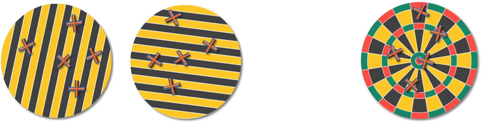 It’s kind of like playing darts and trying to find out how well you are doing. Determining different precision components on different measurement setups would be a little bit like having a dartboard with straight stripes so that you would determine the position of a dart only in one dimension. If you turned the dartboard between game rounds, you would get information about both x and y values of the coordinates, but there would be no meaningful way to combine this information.